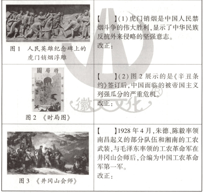 16. 艺术作品蕴藏大量历史信息。辨别下列作品背后史实的正误,在该题前的括号内正确的打“√”;错误的打“×”,并加以改正。