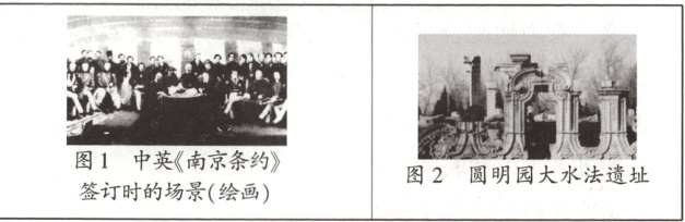 说明:图2:1860年10月,英法联军对北京西北郊的皇家园林——圆明园进行大肆抢劫,然后放火烧毁。圆明园的焚毁是第二次鸦片战争留给中国人的永久创伤,也是人类文明史上非常可耻的一页。(任选一幅图片,从背景、时间、地点、影响等角度回答即可)