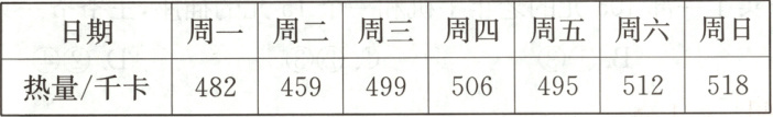 (1)482+459+499+506+495+512+518≈500×7=3500(千卡) 答:这周王阿姨一共消耗大约3500千卡。
