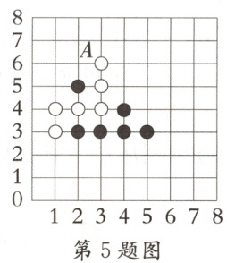 5. 两个同学在方格纸上玩“连五子”游戏。游戏规则:对弈双方分别执黑、白两色棋子,由执黑棋先走,轮流落子。只要两方中任意一方的五个棋子连成一条直线(横、纵、斜三个方向相连都可以),则该方获胜。如图是这两位同学的对弈情况,若棋子A的位置记作(3,6),则下一步黑棋放在(