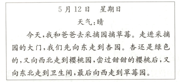 2. 根据亮亮的日记把路线补充完整。(8分)
