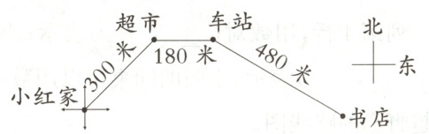 (1)说说小红从家到书店的路线,并填一填。(6分)