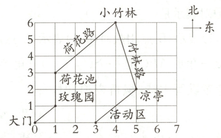 (3)过玫瑰园,修一条与竹林路平行的路,这条路修在哪?请你在图中画出来。