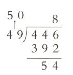 4. 如图的竖式中,把除数49看作50来试商,商8(
