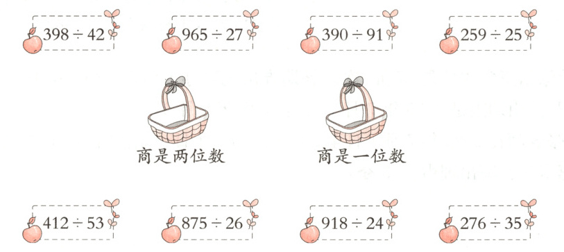 2. 商是两位数:965÷27 259÷25 875÷26 918÷24 商是一位数:398÷42 390÷91 412÷53 276÷35