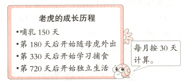 1. 老虎出生多少个月后开始学习捕食?(3分)