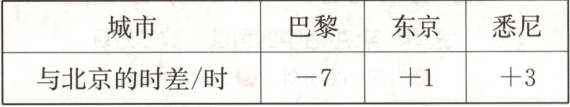 2. 下面是国外几座城市与北京的时差,“+”表示当地时间比北京时间早,“-”表示当地时间比北京时间晚。
