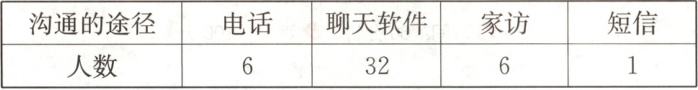 1. 王老师记录了上个月四(1)班家长和他沟通的途径的情况。如果你是该班的一名学生,你认为你的家长用哪种途径和王老师沟通的可能性最大?为什么?(3分)