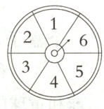 2. 天天和龙龙都是乒乓球爱好者,两人经常一起打乒乓球,为了解决谁先发球的问题,他们制作了一个转盘(如图),其中1,3,5是红色,2,4,6是黄色。他们根据这个转盘设计了不同的游戏规则。