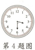 4. 教室的正前面有一个钟表,如图所示,现在时针与分针所形成的角是(