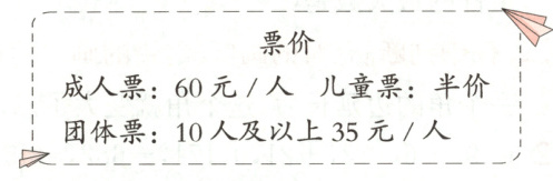 5. 京剧是中华民族文化艺术的瑰宝,深受人们的喜爱。南京大剧院某日表演的门票价格如图所示。四(1)班32名学生和3名老师去看京剧最少需要多少钱?(4分)