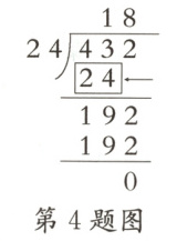 4. 一部儿童动画片总长 432 分,每 24 分编成一集,可以编成多少集?小亮用竖式计算出了结果,竖式中方框里的数表示(