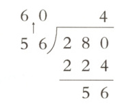 1. 如图是强强计算 $ 280 ÷ 56 $ 的试商情况,正确的商应该是(
