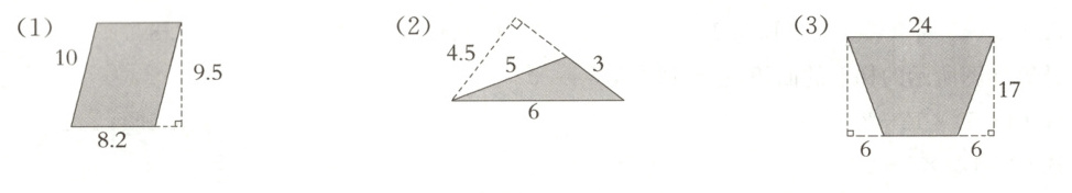 1. 一块平行四边形广告牌,底是12.5米,高是6.4米。若要粉刷这块广告牌,每平方米用油漆0.6千克,至少需要准备多少千克油漆? (只刷一面)(5分)