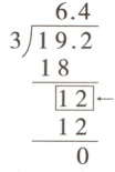 4. 林老师花了$19.2$元买了$3$支黑色钢笔,平均每支黑色钢笔多少钱?如图的竖式中,箭头所指的“$12$”表示(