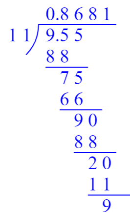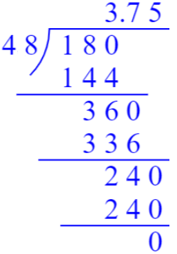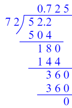 $52.2÷72 =$ $180÷48 =$ $9.55÷11 =$(用循环小数表示商)