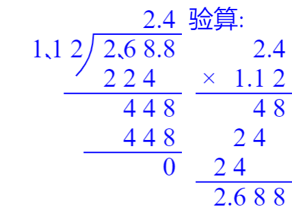 $*2.688÷1.12 =$ $*91.2÷5.7 =$ $42.21÷36\approx$(得数保留两位小数)