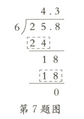 7. 新角度 明晰算理 香蕉每千克6元,25.8元可以买多少千克?小明列出了如图的竖式进行计算。根据题意,虚线框中的“24”表示的是(