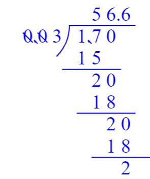 15.6÷24= 3.25÷0.3≈ 1.7÷0.03=
