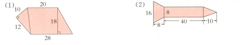 (1)10×12÷2+(20+28)×18÷2=492(cm²)