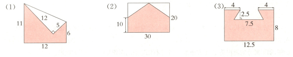 (1)(6+11)×12÷2−12×5÷2=72(dm²)