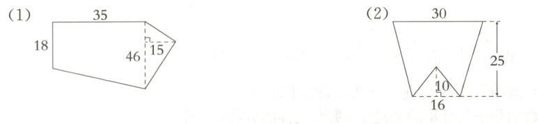 (1)$(18 + 46) × 35 ÷ 2 + 46 × 15 ÷ 2 = 1465$(平方米)