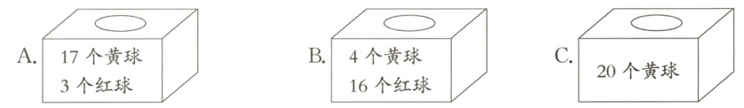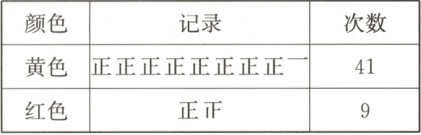 5. 小美在一个盒子里摸球,每次摸出一个球,记录下颜色,再放回去摇匀,重复 50 次,如表是小美摸球的记录。小美最有可能从下面的(