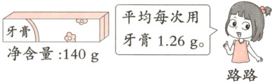 140÷(1.26×2)≈55(天) 答:这支牙膏路路可以用满55天。