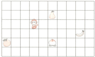 5. 如图,小猴子先向右平移3格,再向下平移2格,最后向左平移1格。根据指令,小猴子能吃到(