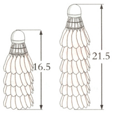9. 两摞相同规格的羽毛球整齐地摆放在桌面上,如图所示(单位:$cm$)。像这样10个羽毛球摞放在桌面上的高度是(