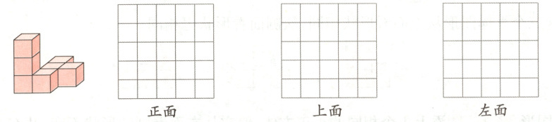 1. 分别画出从正面、上面、左面看到的立体图形的形状。(6分)
