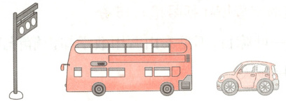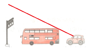 2. 周末,爸爸开车带龙龙出去玩,到了路口刚好遇上红灯,爸爸的车刚好停在大客车的后面,此时龙龙爸爸(