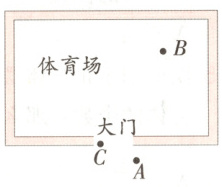 1. 淘气和笑笑分别站在体育场围墙的内外,笑笑站在A处,淘气站在B处。