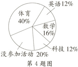 4. 如图是某小学六年级学生参加课外活动情况的扇形统计图。若参加活动的有 200 人,则这个年级一共有(