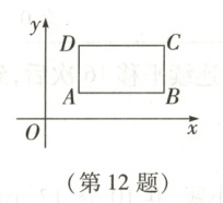 12. 在平面直角坐标系中,我们把一个点的纵坐标与横坐标的比值称为该点的“特征值”,如图,矩形$ABCD$位于第一象限,其四条边分别与坐标轴平行,则该矩形四个顶点中“特征值”最小的是(