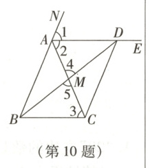 10.D 解析:本题考查平行四边形的判定、全等三角形的判定与性质.①为∠2 = ∠3,②为ASA.故选D.