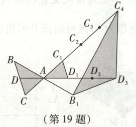 19. 如图,$\triangle ABC$的面积为2,$AD$为$BC$边上的中线,点$A$,$C_{1}$,$C_{2}$,$C_{3}$是线段$CC_{4}$的五等分点,点$A$,$D_{1}$,$D_{2}$是线段$DD_{3}$的四等分点,点$A$是线段$BB_{1}$的中点.