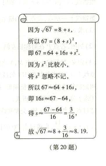 故$\sqrt{67}≈9 - \frac{7}{9}≈8.22$. 5分