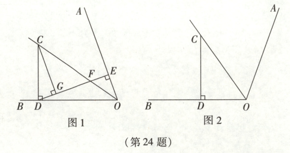 如图1,当$\angle AOB$为锐角时,用等式表示线段$CG$,$OE$,$OD$的数量关系为