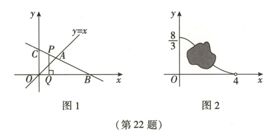 ∴点P在点A的右侧. 7分 ②由题意,得$\frac{1}{2}×(4 - t)×(-\frac{1}{2}t + 2) = 1. $解得$t_1 = 2,$$t_2 = 6($舍去). 9分