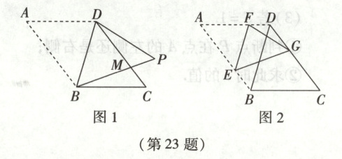 (2)如图2,点E,F分别在平行四边形纸片ABCD的AB,AD边上,连接EF,且$EF// BD$,将平行四边形纸片ABCD沿EF折叠,使点A的对应点G落在CD边上,求DG的长。
