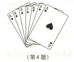 4. 有7张扑克牌如图所示,将其打乱顺序后,背面朝上放在桌面上.若从中随机抽取一张,则抽到的花色可能性