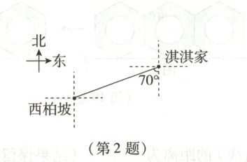 2. 淇淇一家要到革命圣地西柏坡参观.如图,西柏坡位于淇淇家南偏西$70^{\circ}$的方向,则淇淇家位于西柏坡的(