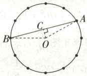 16.$\frac{\sqrt{6}+\sqrt{2}}{2}$ 解析:本题考查圆的性质.如图,数字0对应圆心$O$,数字6对应点$A$,数字7对应点$B$.由题意可得线段$AB$的长与其他的都不相等.连接$OA$,$OB$,过点$O$作$OC \perp AB$于点$C$,则$OA = OB$,$AC = BC$,$\angle AOB=\frac{360^{\circ}}{12} × 5=150^{\circ}$,$\therefore \angle AOC=\angle BOC=75^{\circ}$,$\therefore AC = OA · \sin \angle AOC=1 × \sin 75^{\circ}=\frac{\sqrt{6}+\sqrt{2}}{4}$,$\therefore AB = 2AC=\frac{\sqrt{6}+\sqrt{2}}{2}$,即这条线段的长为$\frac{\sqrt{6}+\sqrt{2}}{2}$.