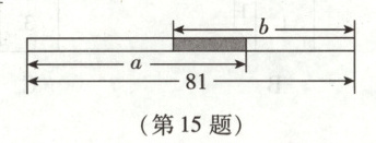 15. 甲、乙两张等宽的长方形纸条,长分别为a,b. 如图,将甲纸条的$\frac{1}{3}$与乙纸条的$\frac{2}{5}$叠合在一起,形成长为81的纸条,则a + b =