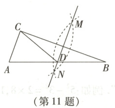 11.A 解析:本题考查尺规作图。根据作图痕迹可得MN垂直平分BC,$\therefore CD = BD$,$\therefore \angle BCD = \angle B = 20^{\circ}$。$\because CD = AD$,$\therefore \angle A = \angle ACD$。$\because \angle B + \angle BCD + \angle A + \angle ACD = 180^{\circ}$,$\therefore \angle A = \angle ACD = 70^{\circ}$,$\therefore \angle ACB = 90^{\circ}$,$\therefore$点D为$\triangle ABC$的外心,只有A项错误,符合题意。故选A。