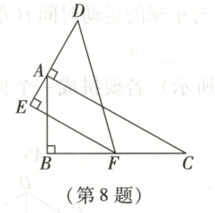 8. 一副三角板按如图所示方式放置,点A在DE上,点F在BC上,AD⊥AC,则∠BFD的度数为(
