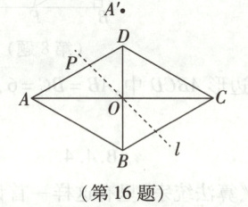 16. 如图,在菱形ABCD中,对角线AC,BD相交于点O,AC = 6,∠ABC = 120°。点A与点A′关于过点O的直线l对称,直线l与AD交于点P。当点A′落在BD的延长线上时,AP的值为