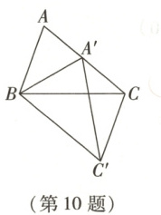 10. 如图,在$\triangle ABC$中,$\angle A = 70^{\circ}$,$AC = BC$,将$\triangle ABC$绕点$B$按顺时针方向旋转一定角度,得到$\triangle A'BC'$,点$A'$恰好落在$AC$上,连接$CC'$,则$\angle ACC'$的度数为(