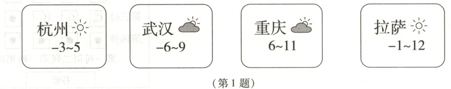 1. 杭州、武汉、重庆、拉萨都在地球的北纬30°附近,下面是2025年2月9日这四个城市的最高和最低气温(单位:℃),则日温差最小的城市是(